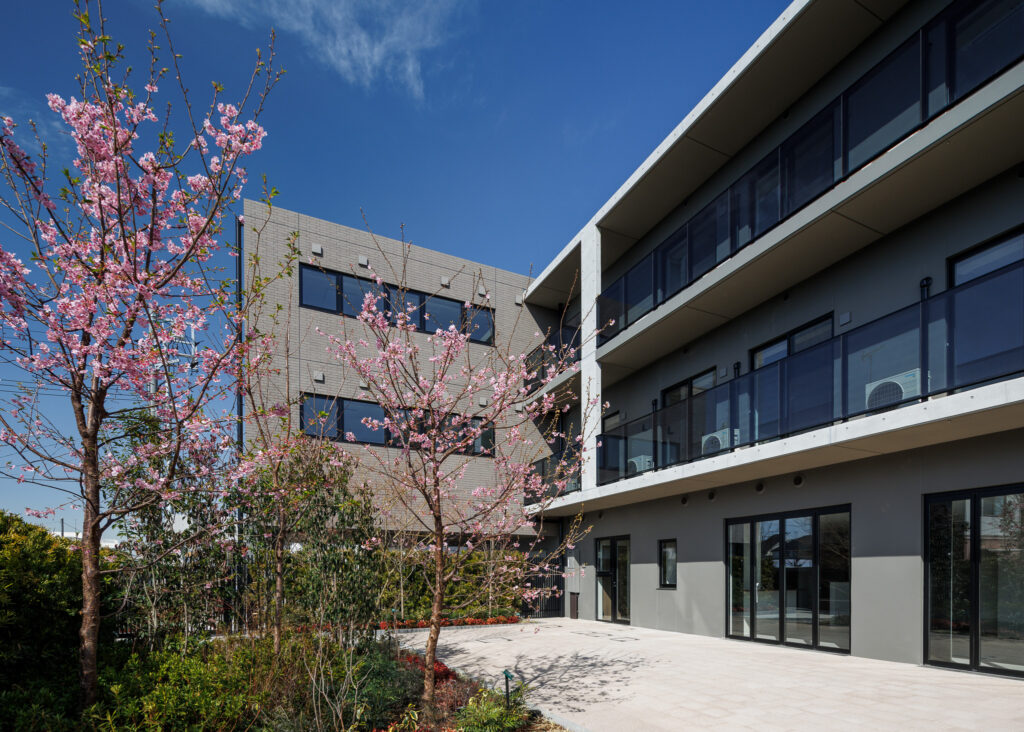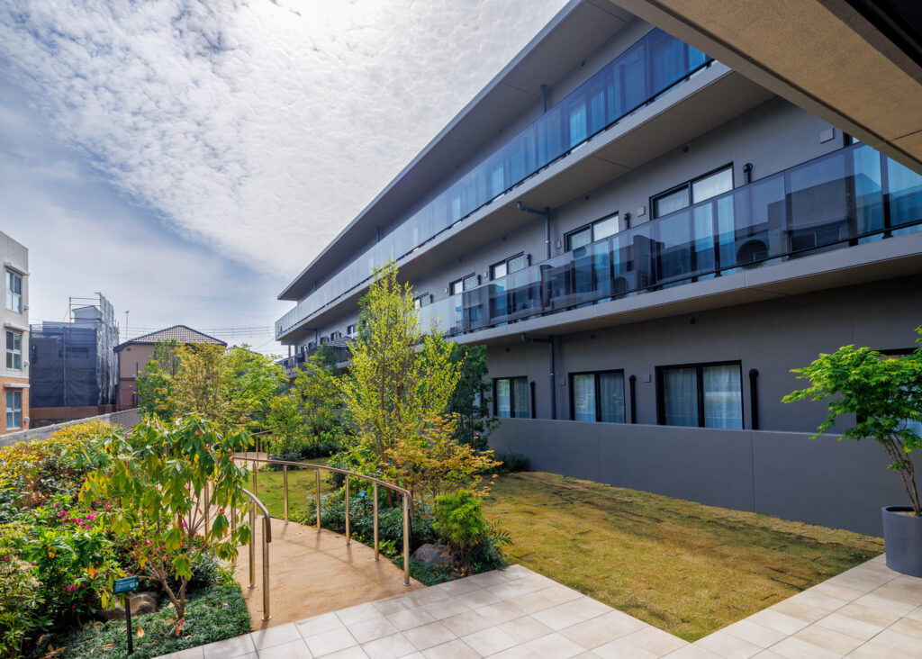 ホームの中庭や屋上庭園には、緑の木々や花々が彩りを添え、日差しを浴びながら歩行訓練や散策ができるスペースを設けています。