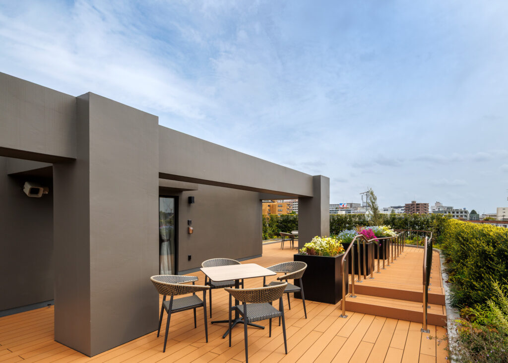 また、1階ダイニング横には、大人数での体操やレクリエーションなど、さまざまな活動を楽しめるできる広さを確保したテラスを設置、ホーム内の各所で太陽の光を感じながらお過ごしいただけます。